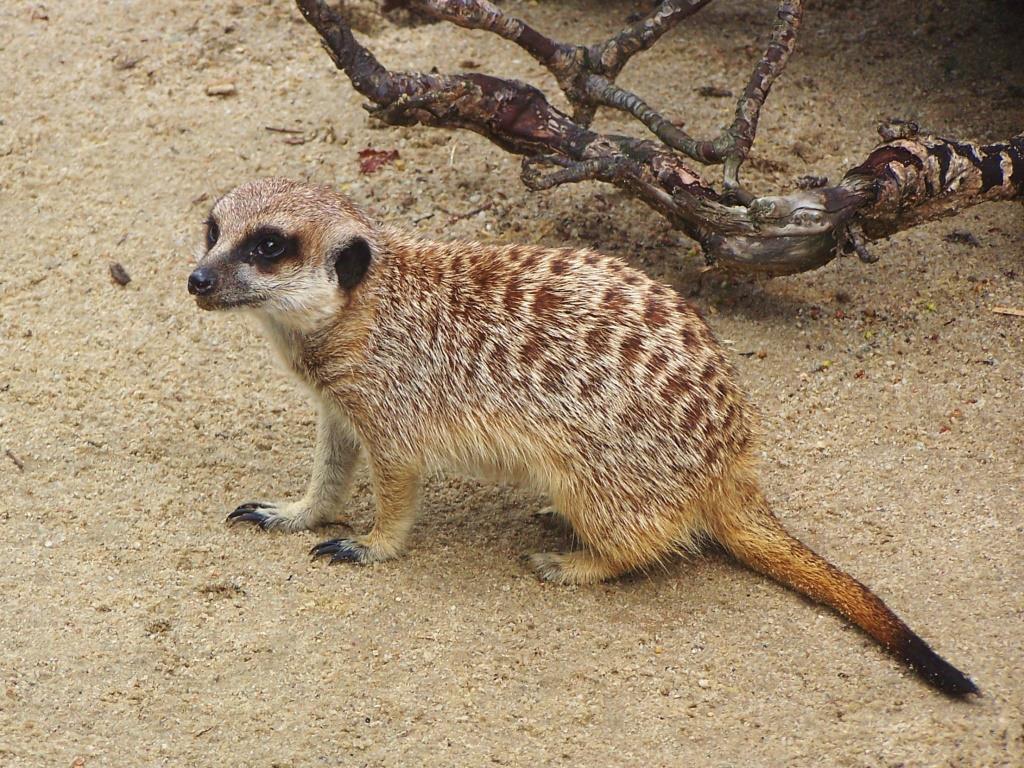 Глаза сурикатов — это совершенное приспособление к условиям открытой, ярко освещённой местности. Тёмные отметины вокруг глаз снижают воздействие прямого солнечного света, уменьшая блики и помогая лучше различать объекты на фоне блистающих песков. Горизонтальные зрачки обеспечивают им широкий обзор, позволяя сканировать окружающее пространство, почти не поворачивая головы. Кроме того, у сурикатов есть защитная мигательная перепонка — «третье веко», — которая прикрывает глаза при рытье, предохраняя их от песка и мусора.